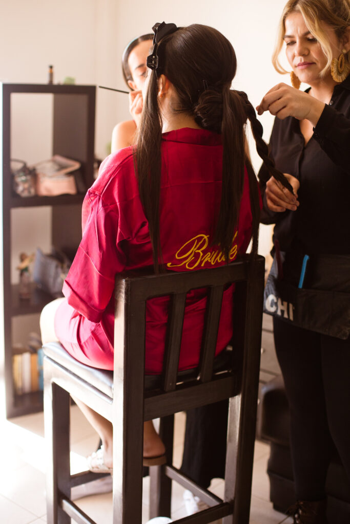 From romantic updos to flowing beach waves, our specialists create effortless hairstyles that complement your dress and withstand the celebration.